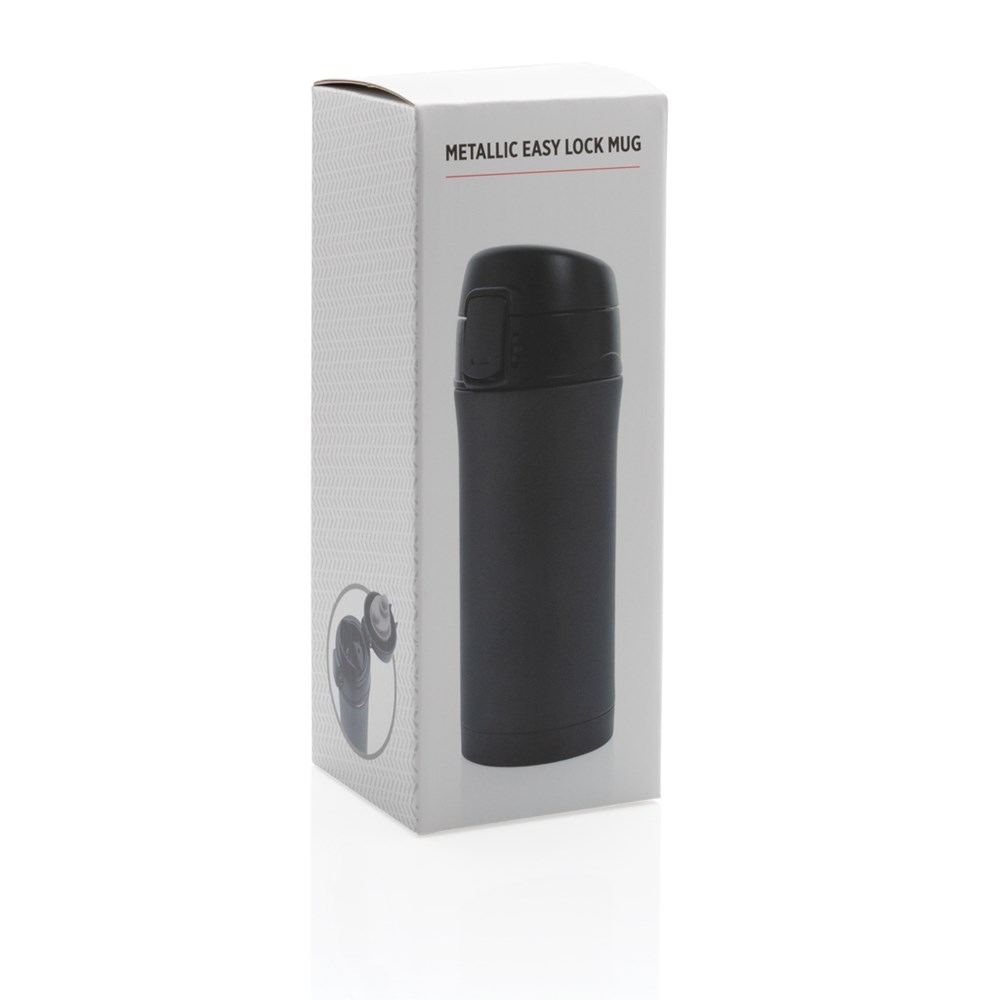 Una bellissima versione metallica di questa fantastica tazza isolata a vuoto in acciaio inossidabile a doppia parete che mantiene la tua bevanda calda fino a 5 ore o fresca fino a 15 ore. Il coperchio è bloccabile e quindi evita qualsiasi rischio di perdite o fuoriuscite. Il coperchio è facile da pulire per un'igiene ottimale ed è lavabile in lavastoviglie. Il design unico della tazza ti consente di bere comodamente e in sicurezza con una mano direttamente dalla tazza. La dimensione della tazza è adatta per essere inserita in qualsiasi portabevande per auto. Capacità: 300 ml.