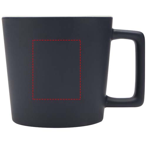 Tazza in ceramica dal design moderno e finitura opaca. Capacità di 370 ml. Sempre lavabile in lavastoviglie, indipendentemente dal metodo di personalizzazione impiegato. Fornita in una confezione regalo in cartone riciclato.