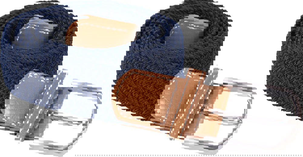 Cintura intrecciata con fibbia metallica. La composizione elastica 52% caucciù e 48% polipropilene, intessuta e intrecciata, consente la circolazione dell'aria. Finitura passanti in poliuretano, con cuciture a contrasto. Fornita nell'apposita sacca in cotone.