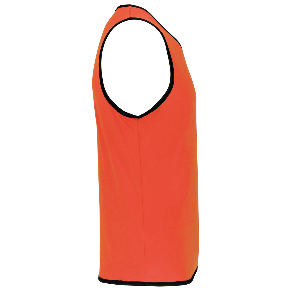 100% poliestere. 2 strati cuciti da 160 g/m² ciascuno. Sbiechi elasticizzati a contrasto e rinforzati su collo, giromanica e fondo capo, per una migliore resistenza alla trazione.