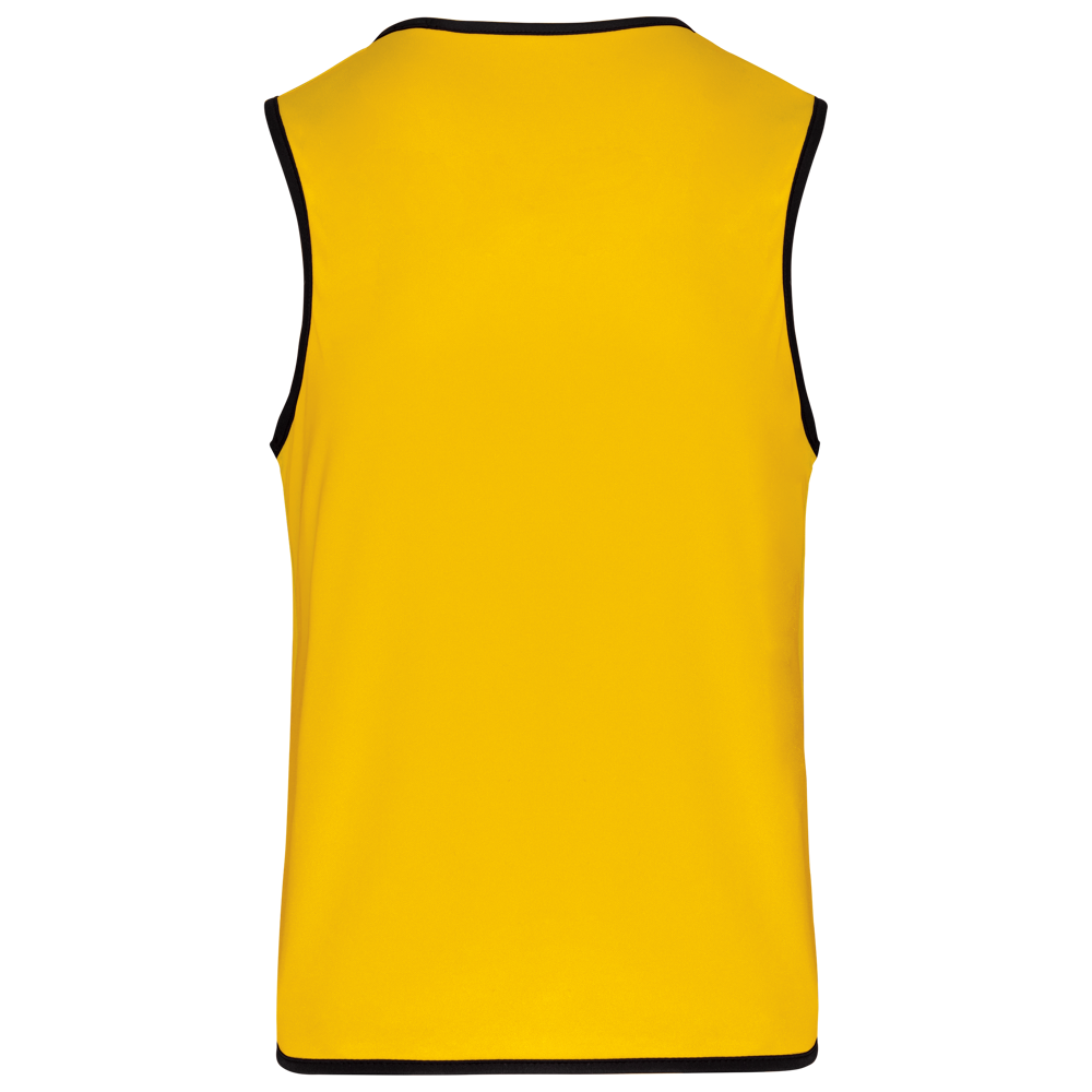 100% poliestere. 2 strati cuciti da 160 g/m² ciascuno. Sbiechi elasticizzati a contrasto e rinforzati su collo, giromanica e fondo capo, per una migliore resistenza alla trazione.