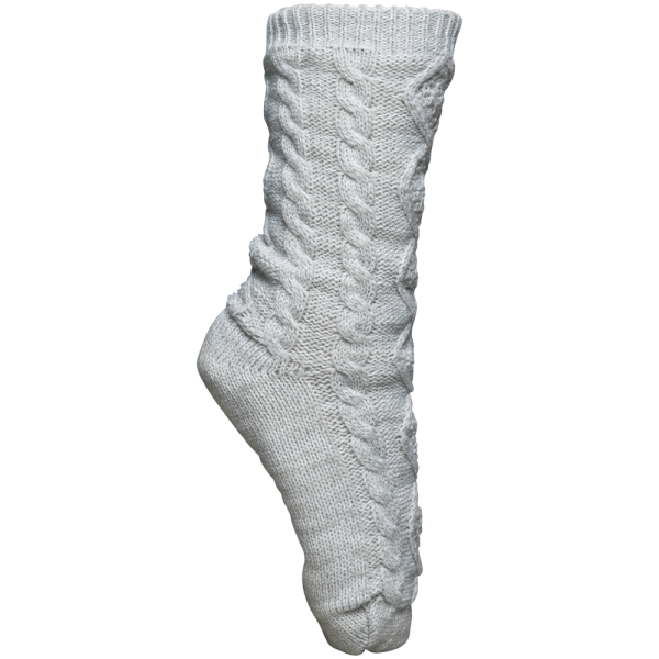 Esterno: 100% acrilico. Interno: 100% poliestere. Calde calze da casa, foderate in Sherpa. Tacchetti antiscivolo sotto la suola. Effetto "lavorato a mano" con lavorazione ritorta. Altezza 27 cm.