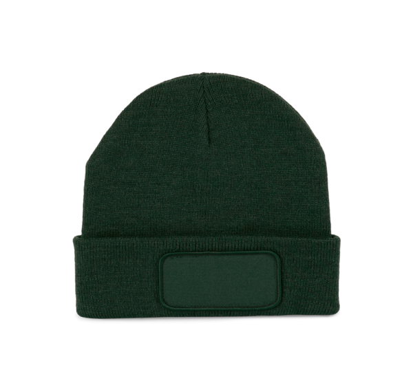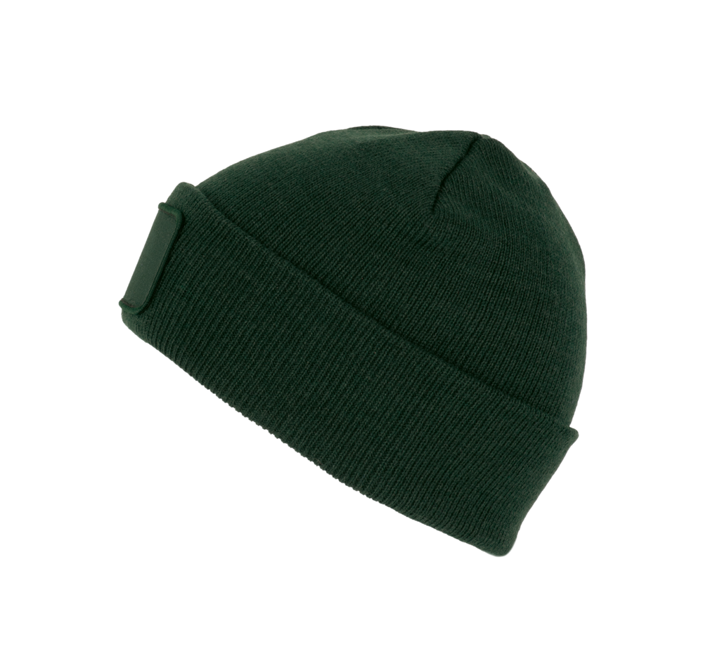 50% Poliestere riciclato e 50% Acrilico. Berretto a maglia con risvolto. Patch frontale in cotone per una facile personalizzazione. Etichetta con il nome della marchio staccabile.