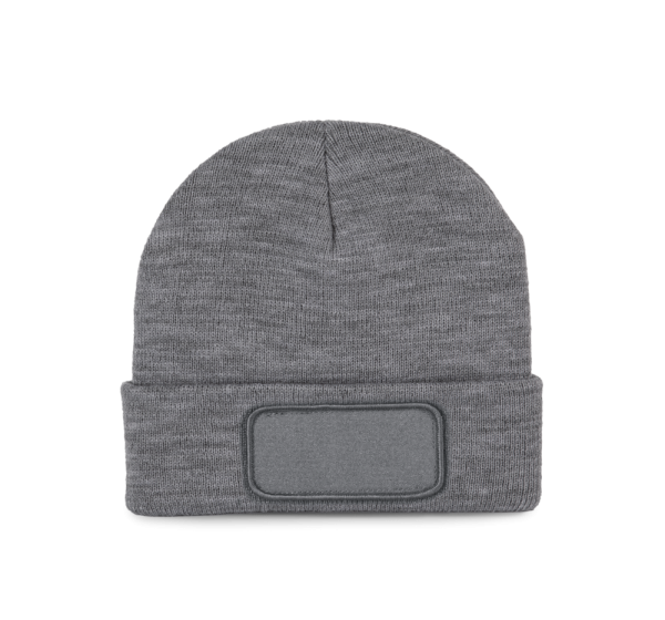 50% Poliestere riciclato e 50% Acrilico. Berretto a maglia con risvolto. Patch frontale in cotone per una facile personalizzazione. Etichetta con il nome della marchio staccabile.