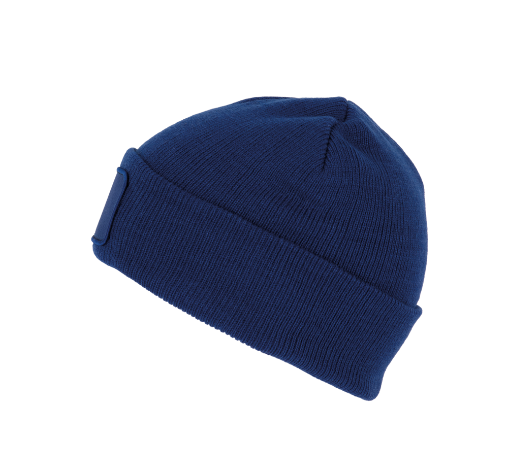 50% Poliestere riciclato e 50% Acrilico. Berretto a maglia con risvolto. Patch frontale in cotone per una facile personalizzazione. Etichetta con il nome della marchio staccabile.
