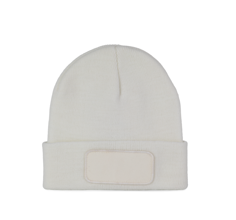 50% Poliestere riciclato e 50% Acrilico. Berretto a maglia con risvolto. Patch frontale in cotone per una facile personalizzazione. Etichetta con il nome della marchio staccabile.