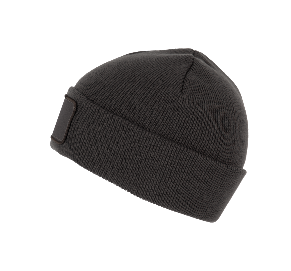 100% Acrilico. Berretto a maglia con risvolto in acrilico soft. Patch in cotone per facilitare la personalizzazione. Etichetta con il nome della marchio staccabile.