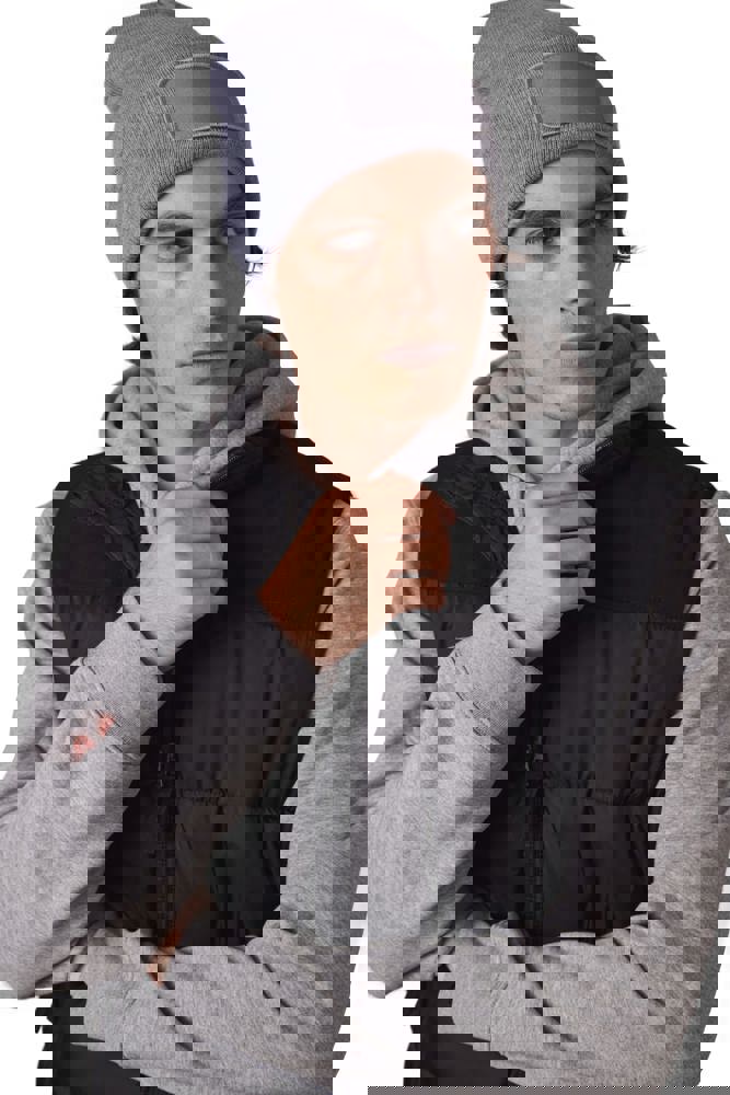 100% Acrilico. Berretto a maglia con risvolto in acrilico soft. Patch in cotone per facilitare la personalizzazione. Etichetta con il nome della marchio staccabile.