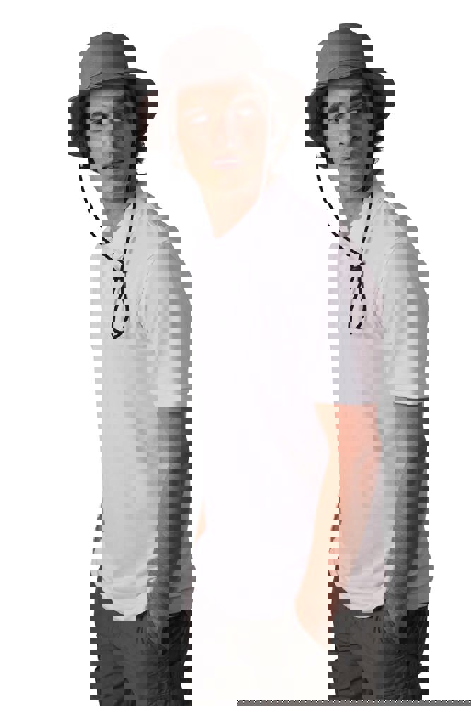 100% cotone. Berretto stile bucket in cotone. Laccio con stopper. Etichetta con il nome della marchio staccabile.