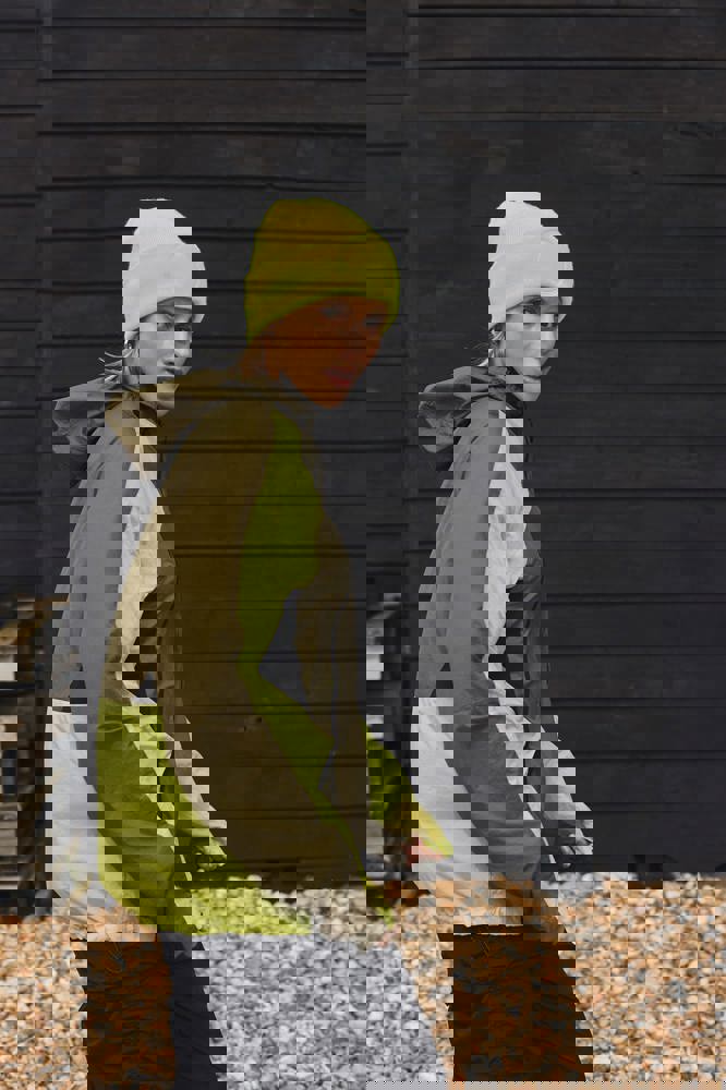 100% acrilico. Maglia a doppio strato e morbida al tatto. Patch in twill di cotone per la decorazione.