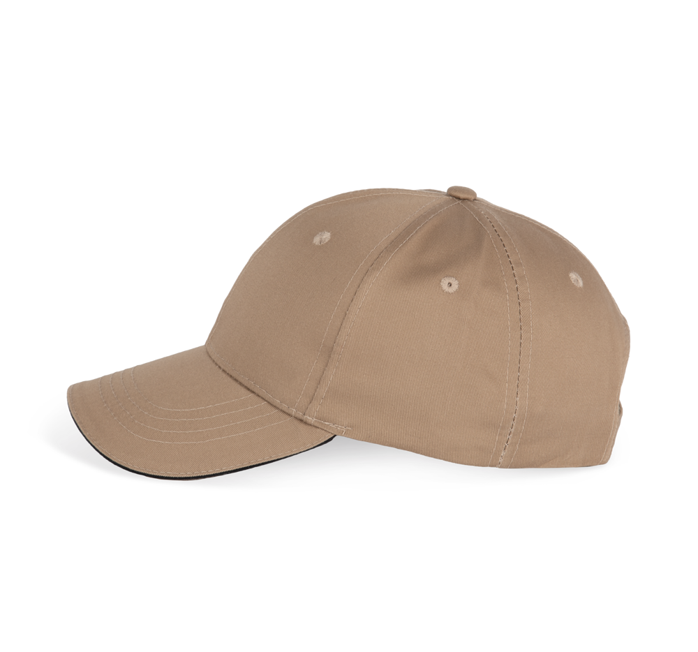 65% poliestere / 35% cotone. Cappellino a 6 pannelli. Chiusura regolabile con velcro.