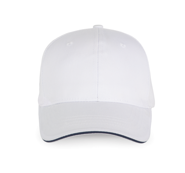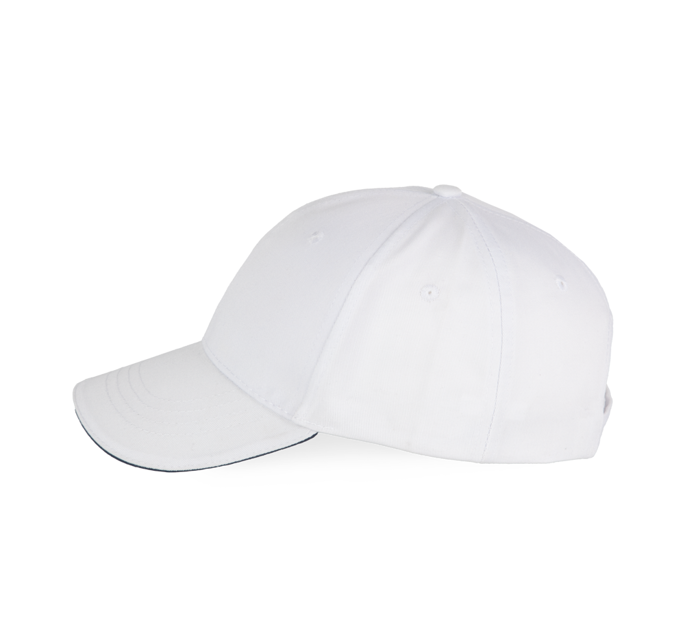 65% poliestere / 35% cotone. Cappellino a 6 pannelli. Chiusura regolabile con velcro.