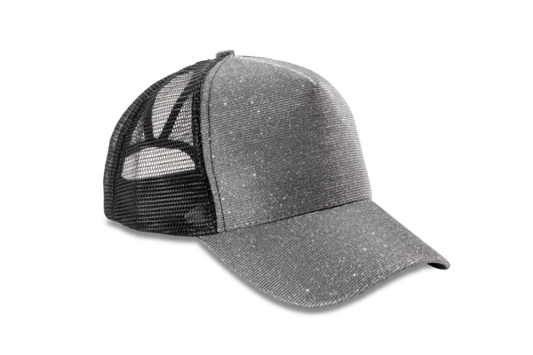 100% poliestere con 100% cotone sotto la visiera. 5 pannelli: 4 in maglia a rete e 1 in tessuto. Pannello frontale rinforzato. Taglia regolabile mediante chiusura a strappo. Visiera ricurva in tessuto. Spazio per la coda di cavallo dietro.