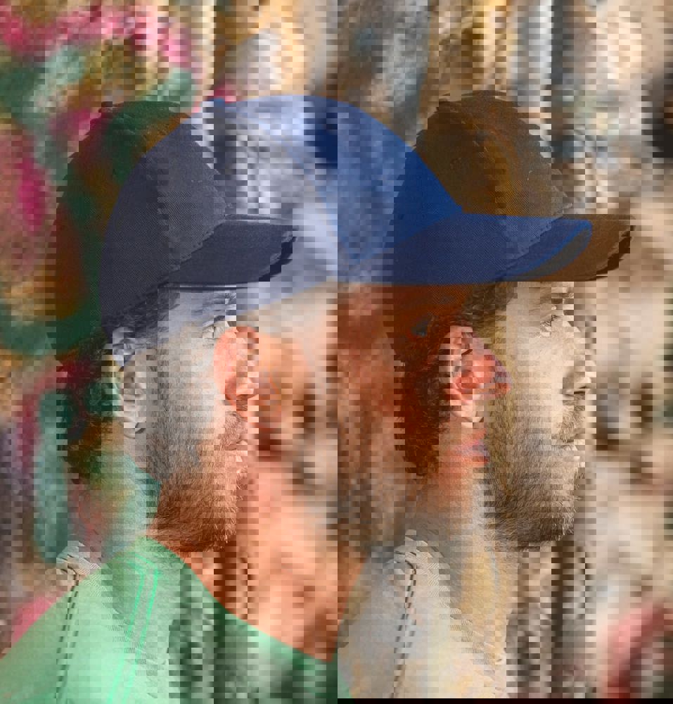 98% cotone, 2% elastan. 6 pannelli, di cui quello frontale rigido. Visiera in PU riciclato... altro