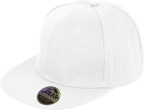 100% acrilico twill con interno 100% cotone. 6 pannelli, di cui quello frontale rigido. Visiera piatta con 6 cuciture. Occhielli cuciti. Chiusura posteriore regolabile con linguetta in plastica. Etichetta staccabile. Adatto per il ricamo e stampa transfer.