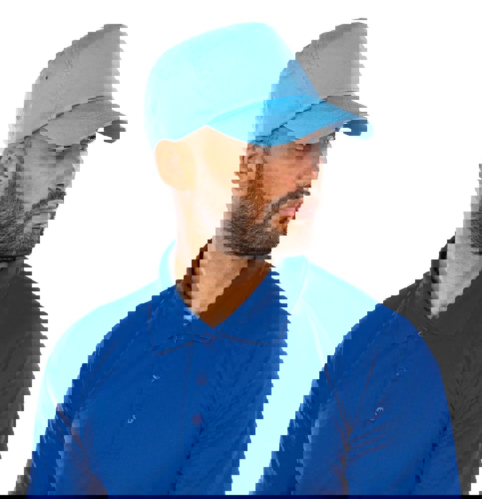 Twill di cotone 100%. 5 pannelli. Pannello di supporto anteriore incernierato. Occhielli a punto Regolatore di dimensioni con chiusura a strappo. Nessuna cucitura centrale: ideale per ricamo e stampa.