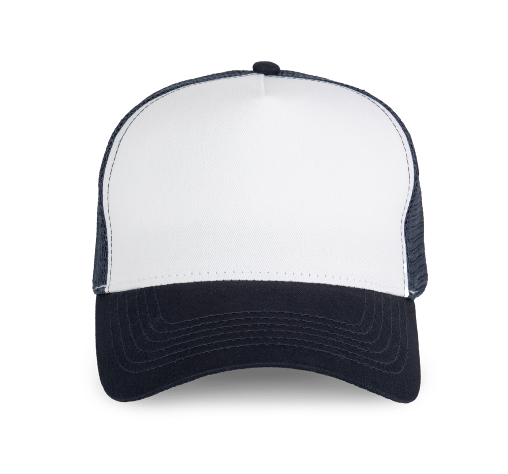 100% cotone. Pannello frontale e visiera in cotone. Pannelli posteriori in poliestere. Visiera pre-incurvata. Chiusura stile rétro Snapback.