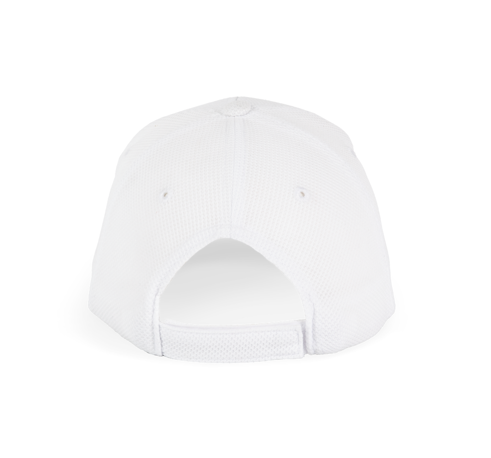 100% Poliestere Piquè. 6 pannelli. Occhielli di ventilazione. Para-sudore interno per maggior comfort. Taglia regolabile e chiusura con Velcro.