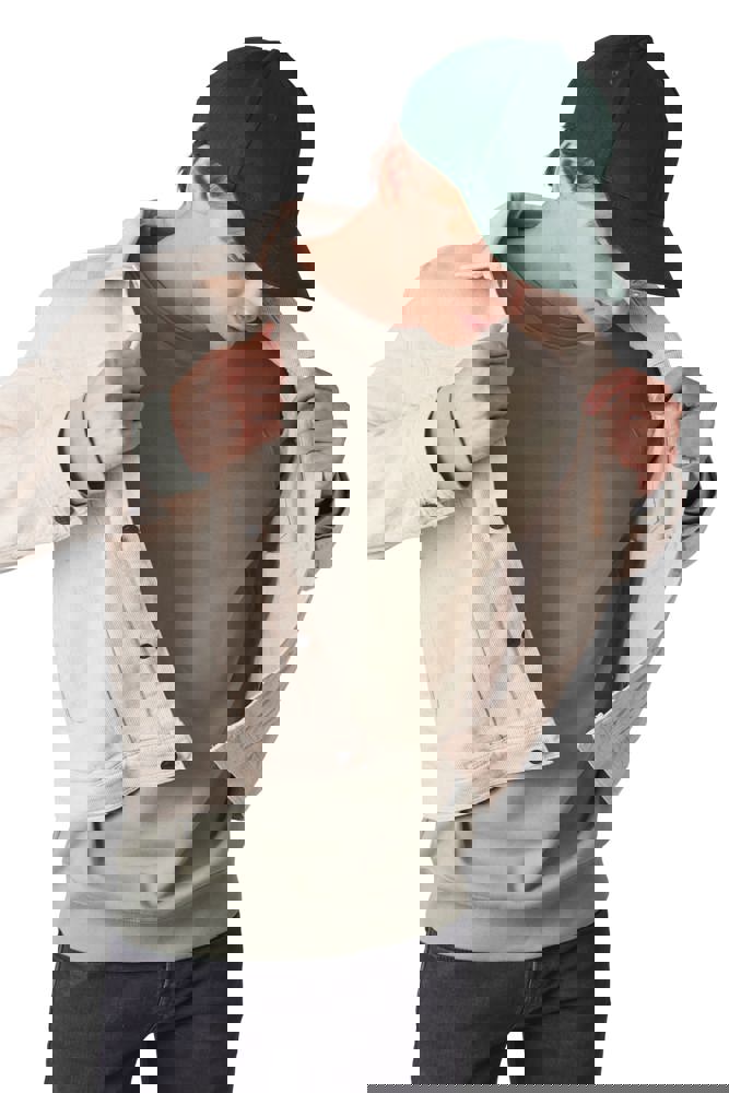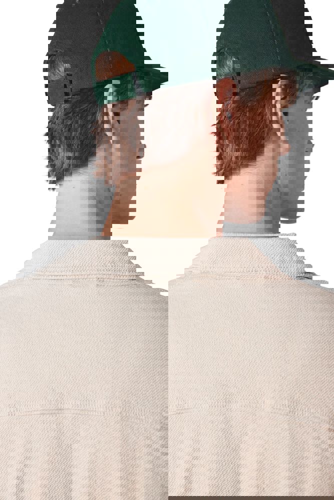 100% cotone pettinato spesso. Chiusura regolabile a strappo.