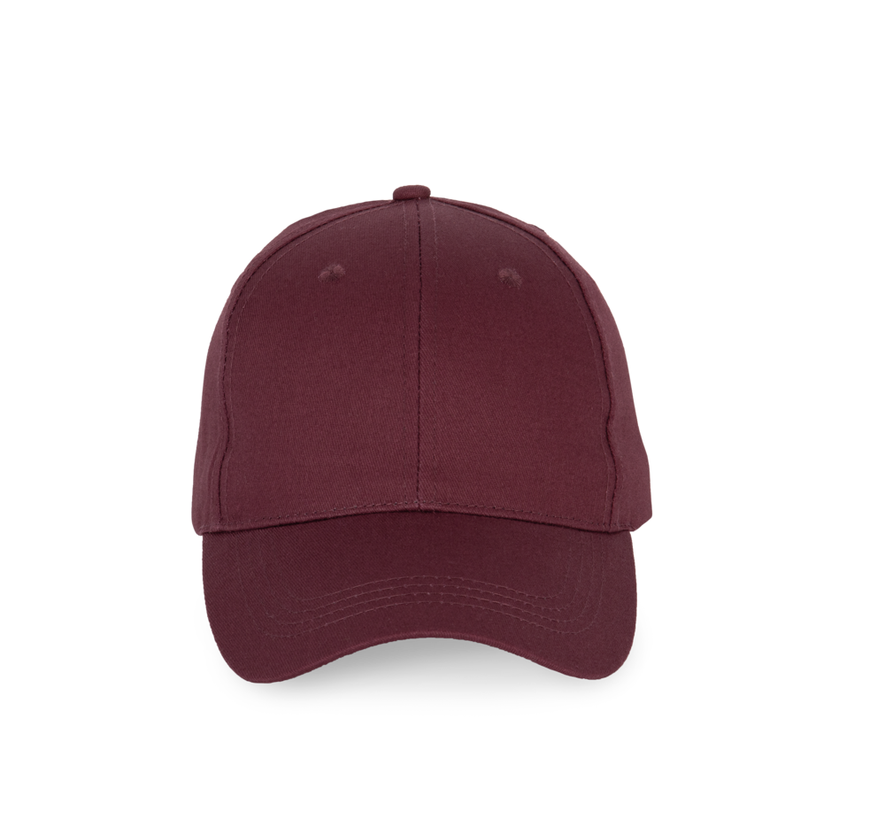 100% cotone. Cappellino a 6 pannelli. Chiusura regolabile tramite fibbia di metallo e passante autobloccante.