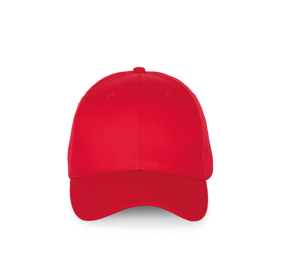 100% cotone. Cappellino a 6 pannelli. Chiusura regolabile tramite fibbia di metallo e passante autobloccante.