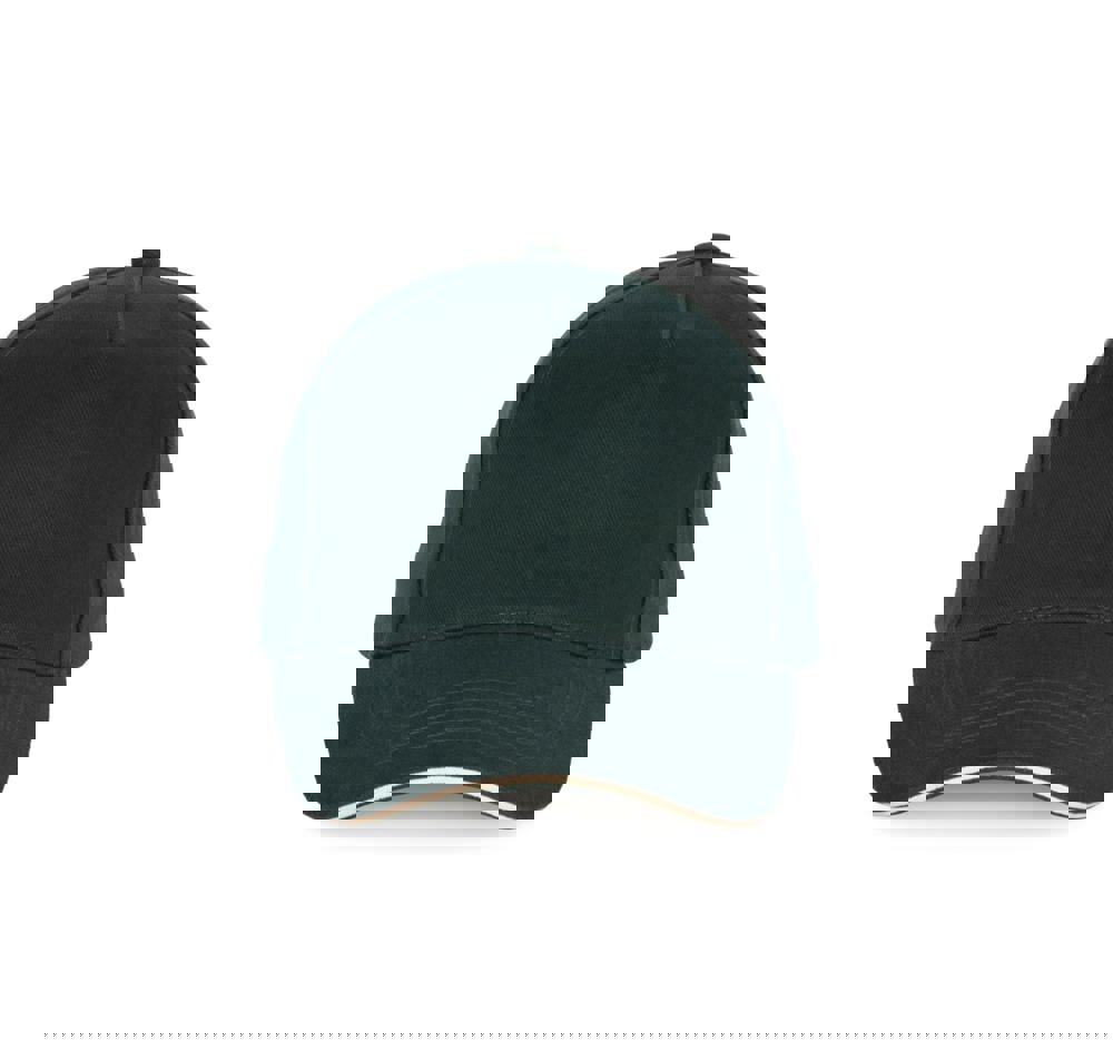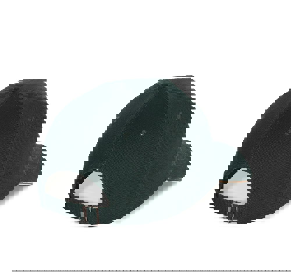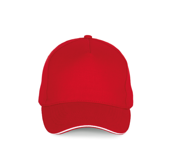 100% cotone. Cappellino a 5 pannelli. Chiusura regolabile tramite fibbia di metallo e passante autobloccante.