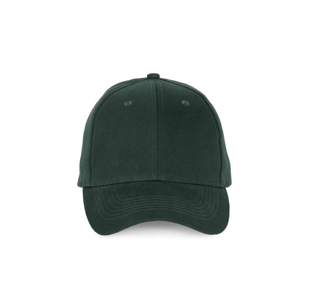 100% cotone. Cappellino a 6 pannelli. Chiusura regolabile tramite fibbia di metallo e passante autobloccante.