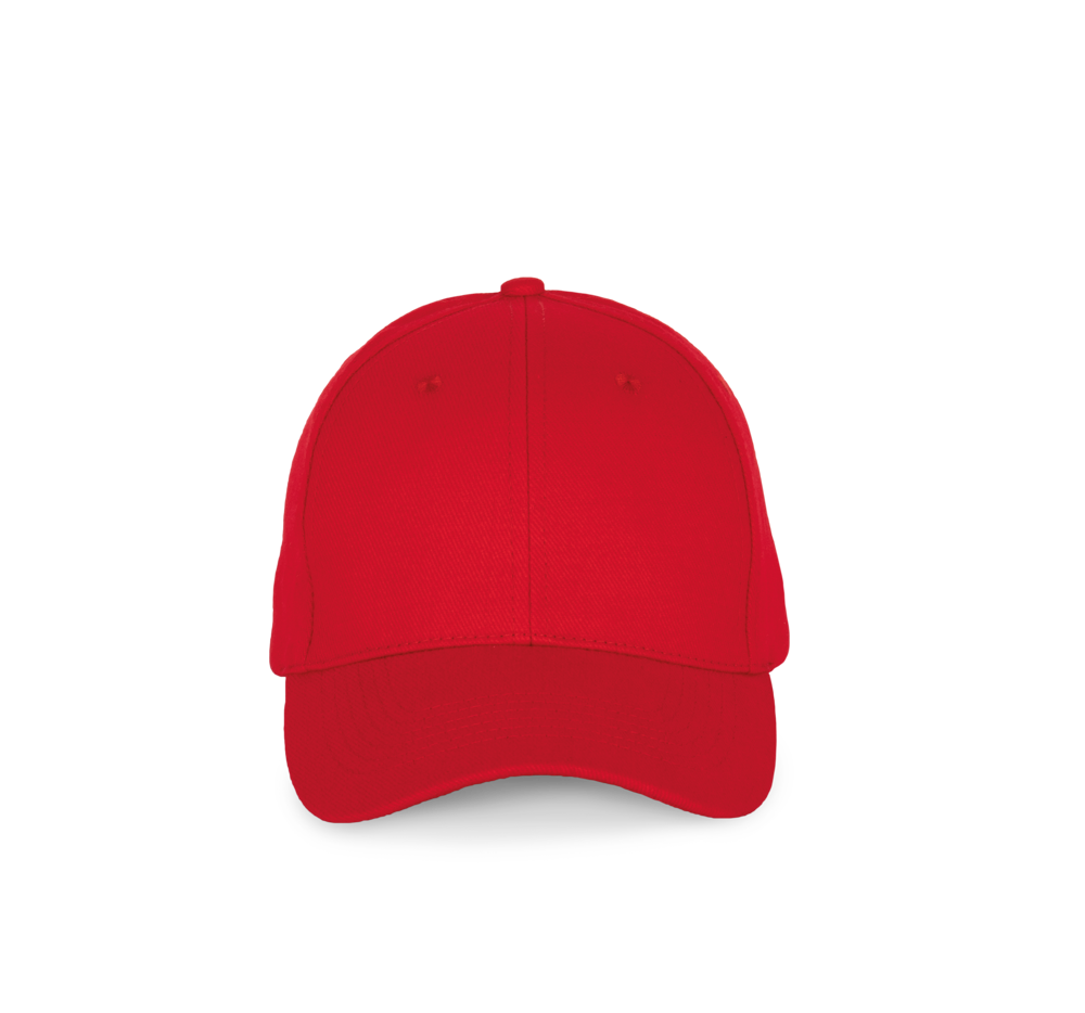 100% cotone. Cappellino a 6 pannelli. Chiusura regolabile tramite fibbia di metallo e passante autobloccante.