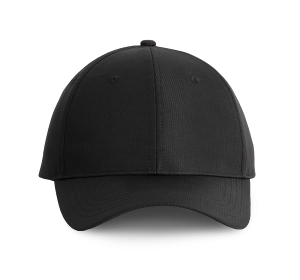 100% poliestere. Cappellino 6 pannelli in stile "Athleisure" ovvero sportivo. Chiusura regolabile a strappo