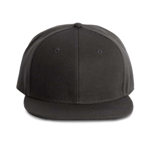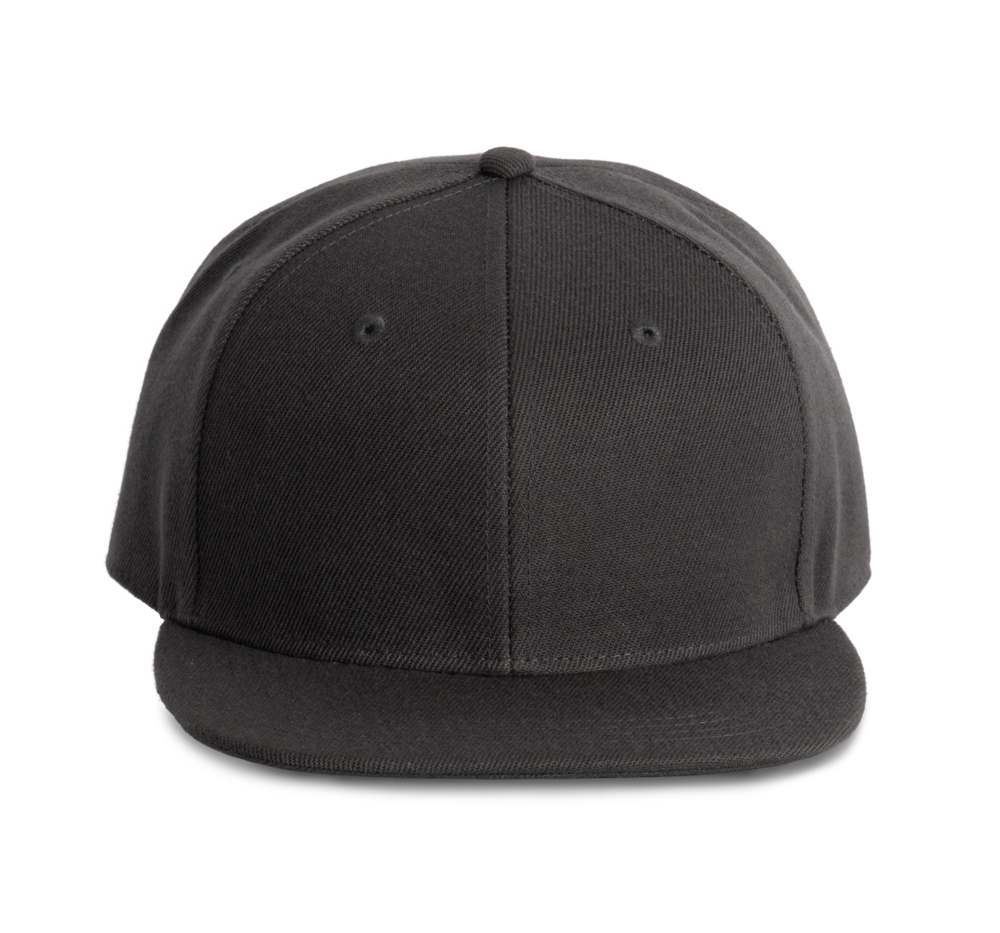 100% poliestere. Cappellino modello snapback 6 pannelli. Visiera piatta e profilo alto. Chiusura regolabile con linguetta di plastica.