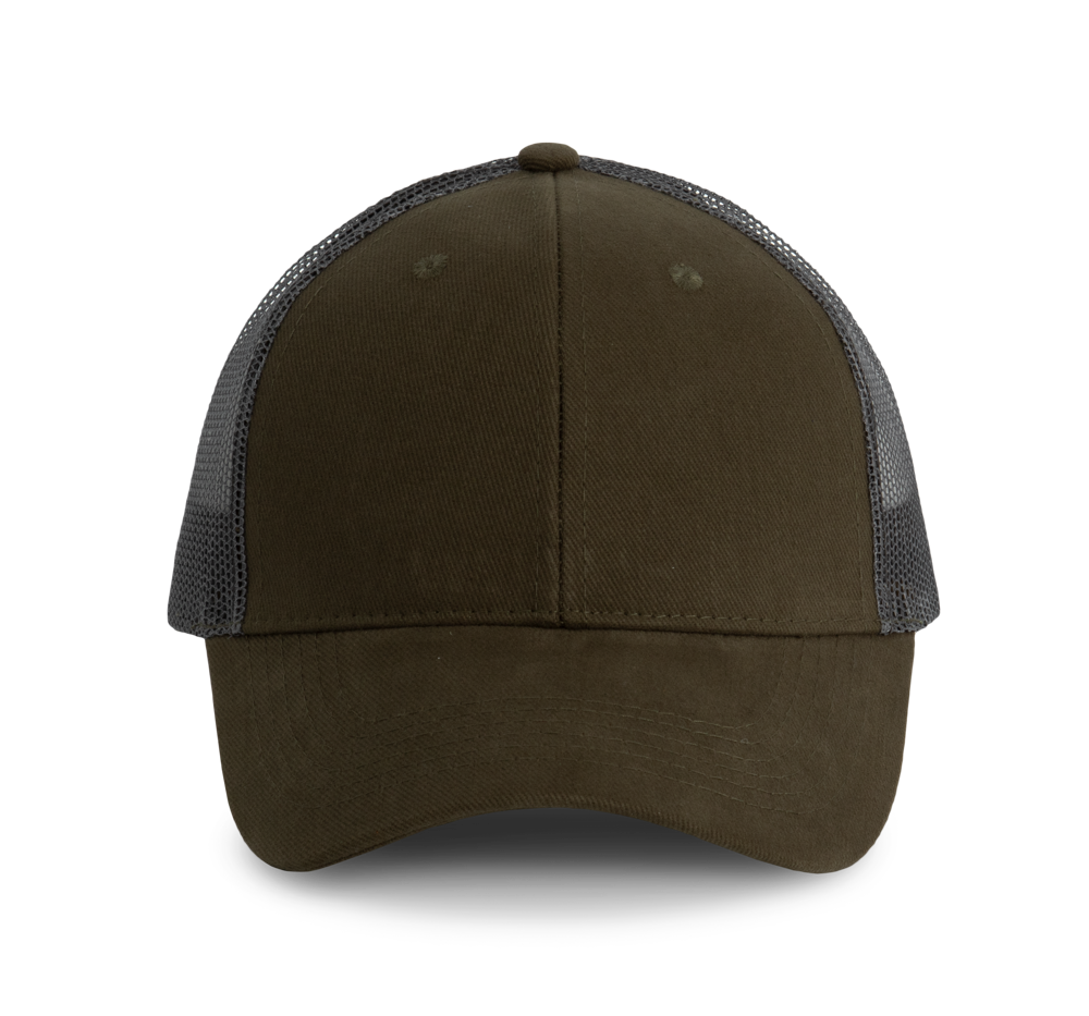 100% cotone / 100% poliestere. Cappellino 6 pannelli modello trucker. Pannelli frontali e visiera... altro