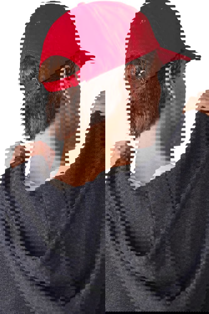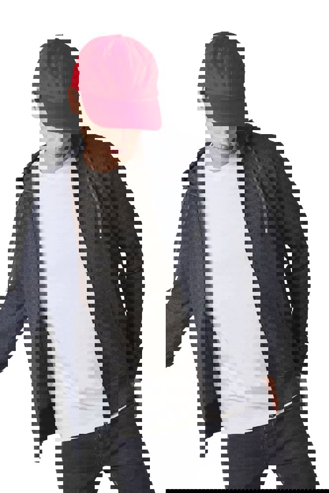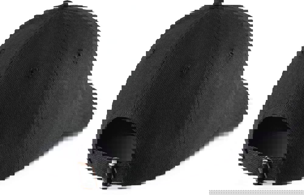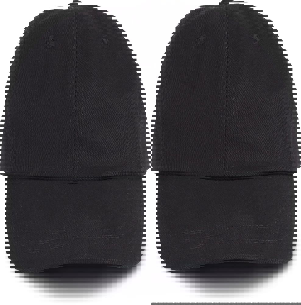 100% cotone spesso pettinato. 6 pannelli. Visiera a profilo basso. Chiusura sul retro con fibbia metallica.