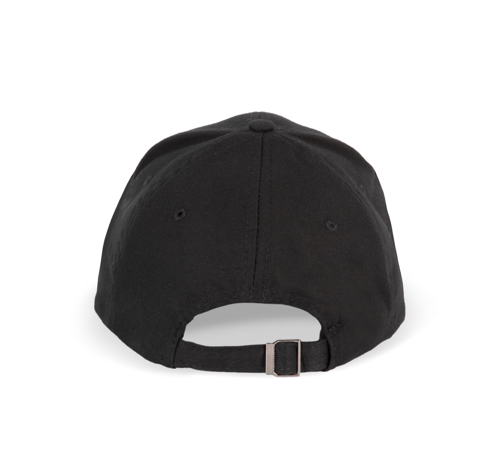 100% twill di cotone. 6 pannelli. Sandwich a contrasto. Chiusura sul retro regolabile con fibbia metallica.