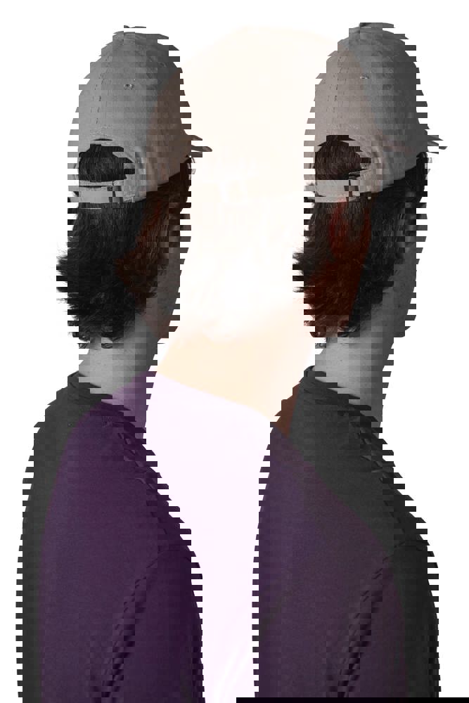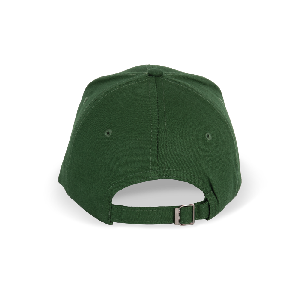 100% twill di cotone. 6 pannelli. Sandwich a contrasto. Chiusura sul retro regolabile con fibbia metallica.