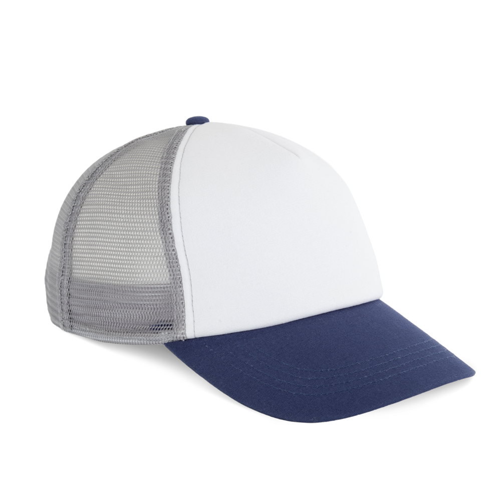 100% cotone. Cappellino 5 pannelli. La collezione K-up Gold Label si distingue per la qualità superiore dei materiali e delle finiture. Pannello frontale in cotone canvas con struttura in schiuma e fodera interna in cotone. Banda interna tergisudore in cotone twill imbottito con 3 cuciture. Parte posteriore in maglia 100% poliestere con chiusura Snapback. Etichetta tear-away cucita all'interno del pannello frontale.