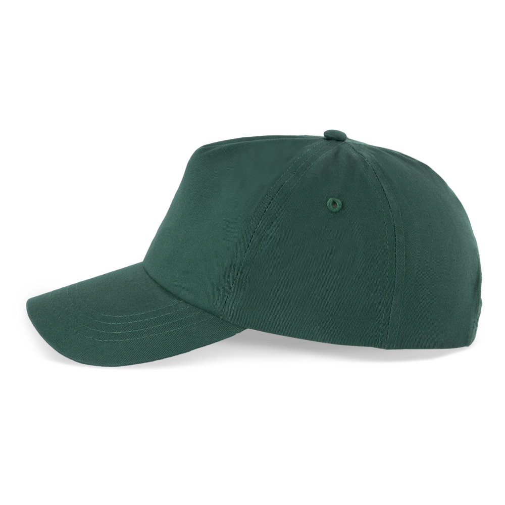 100% twill di cotone. Cappellino a 5 pannelli con regolazione in velcro.