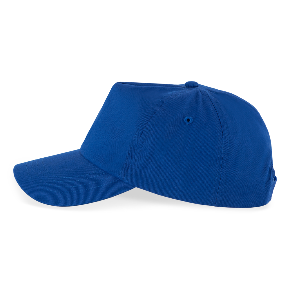 100% twill di cotone. Cappellino a 5 pannelli con regolazione in velcro.