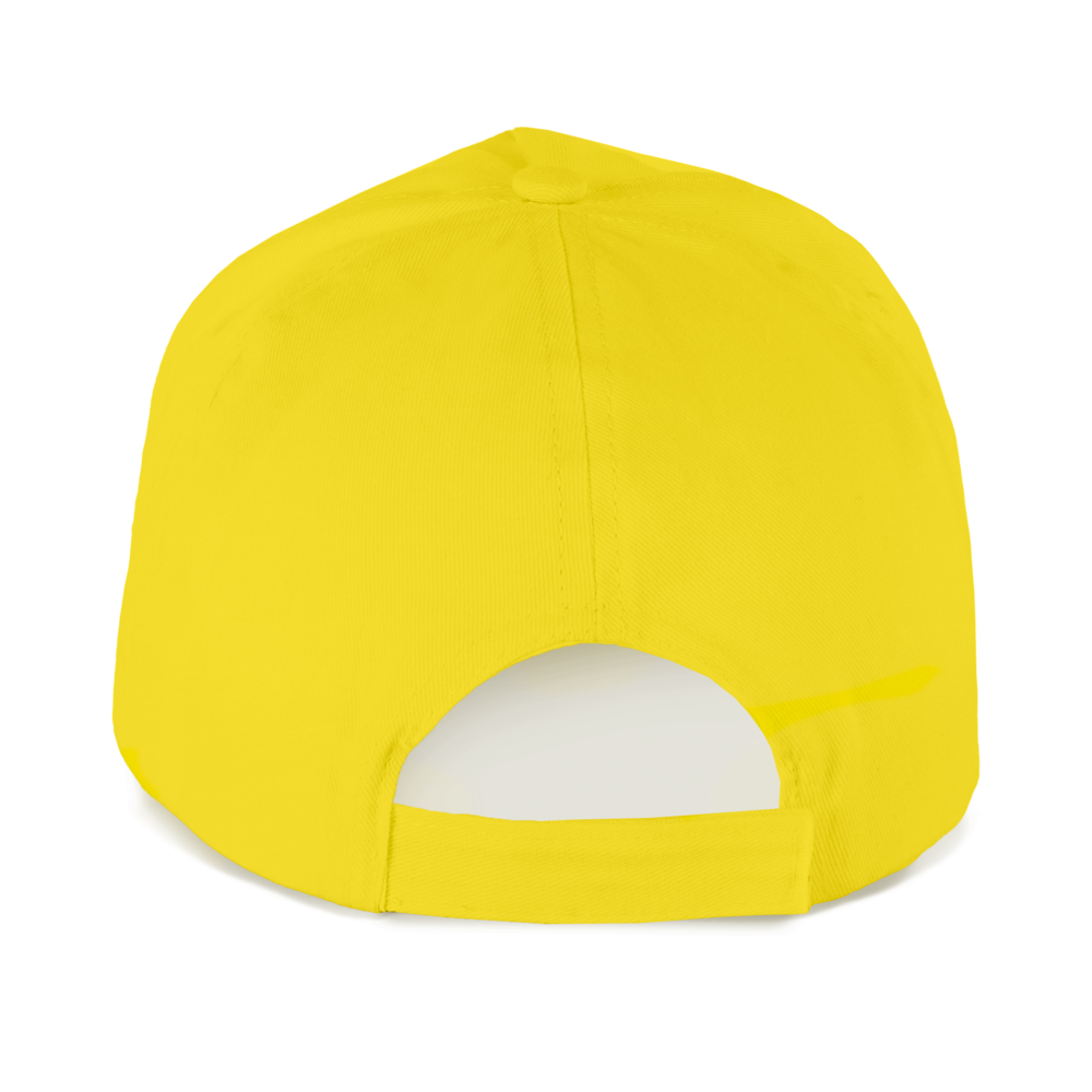 100% twill di cotone. Cappellino a 5 pannelli con regolazione in velcro.
