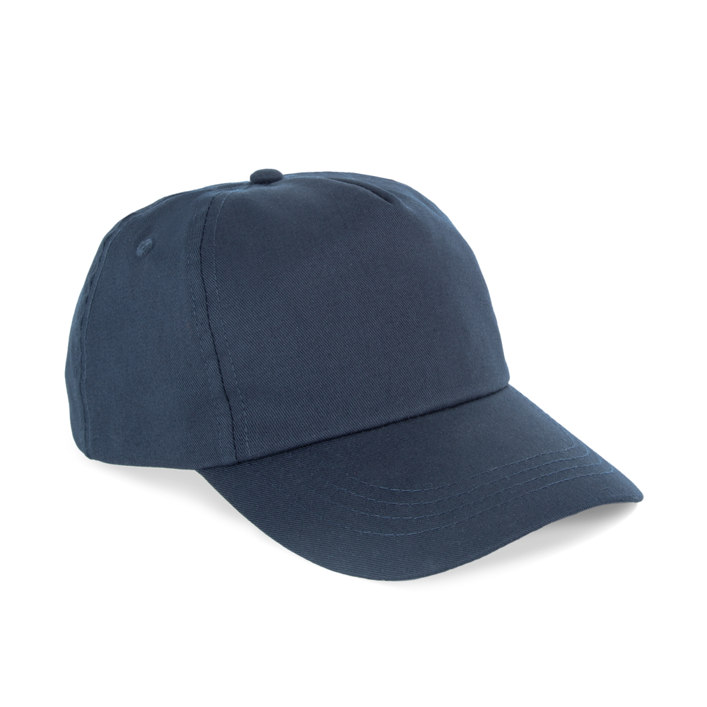 100% twill di cotone. Cappellino a 5 pannelli con regolazione in velcro.