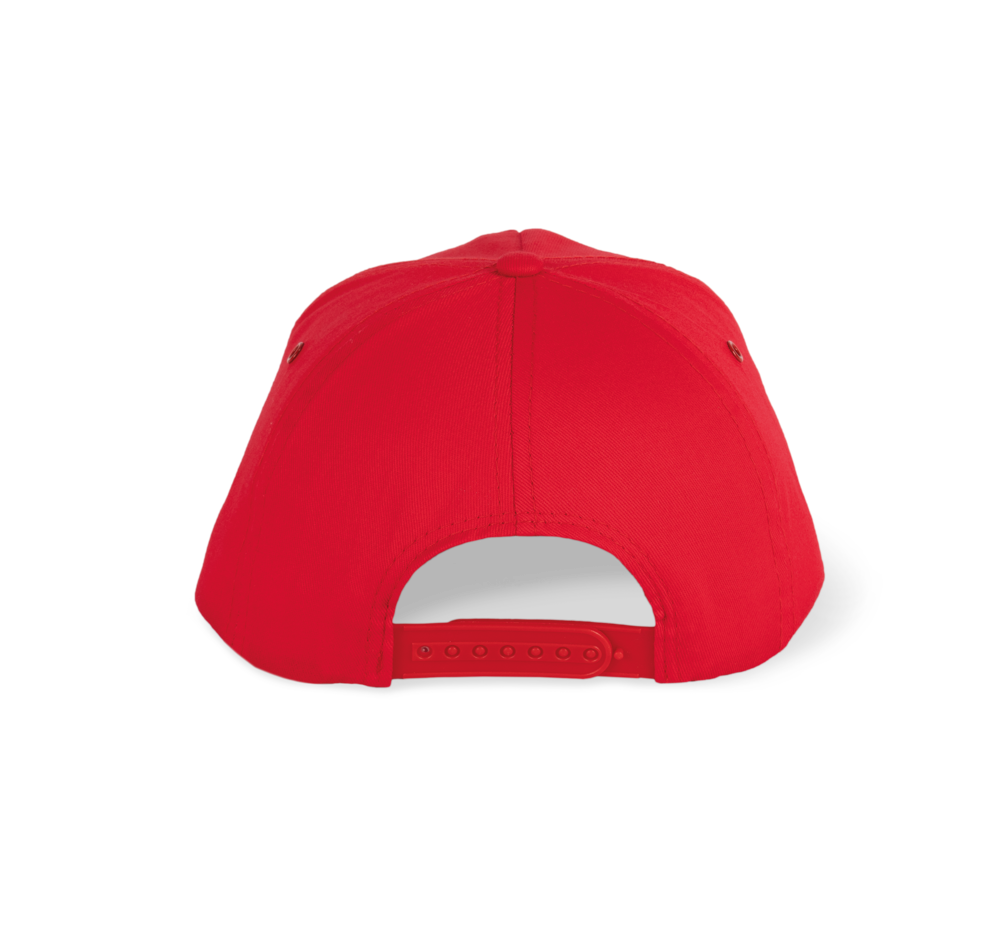 100% cotone twill. 5 pannelli. Taglia regolabile con chiusura in plastica.