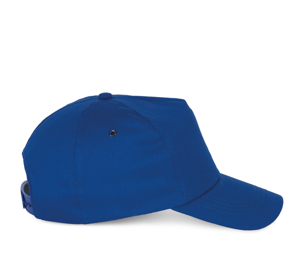 100% cotone twill. 5 pannelli. Taglia regolabile con chiusura in plastica.