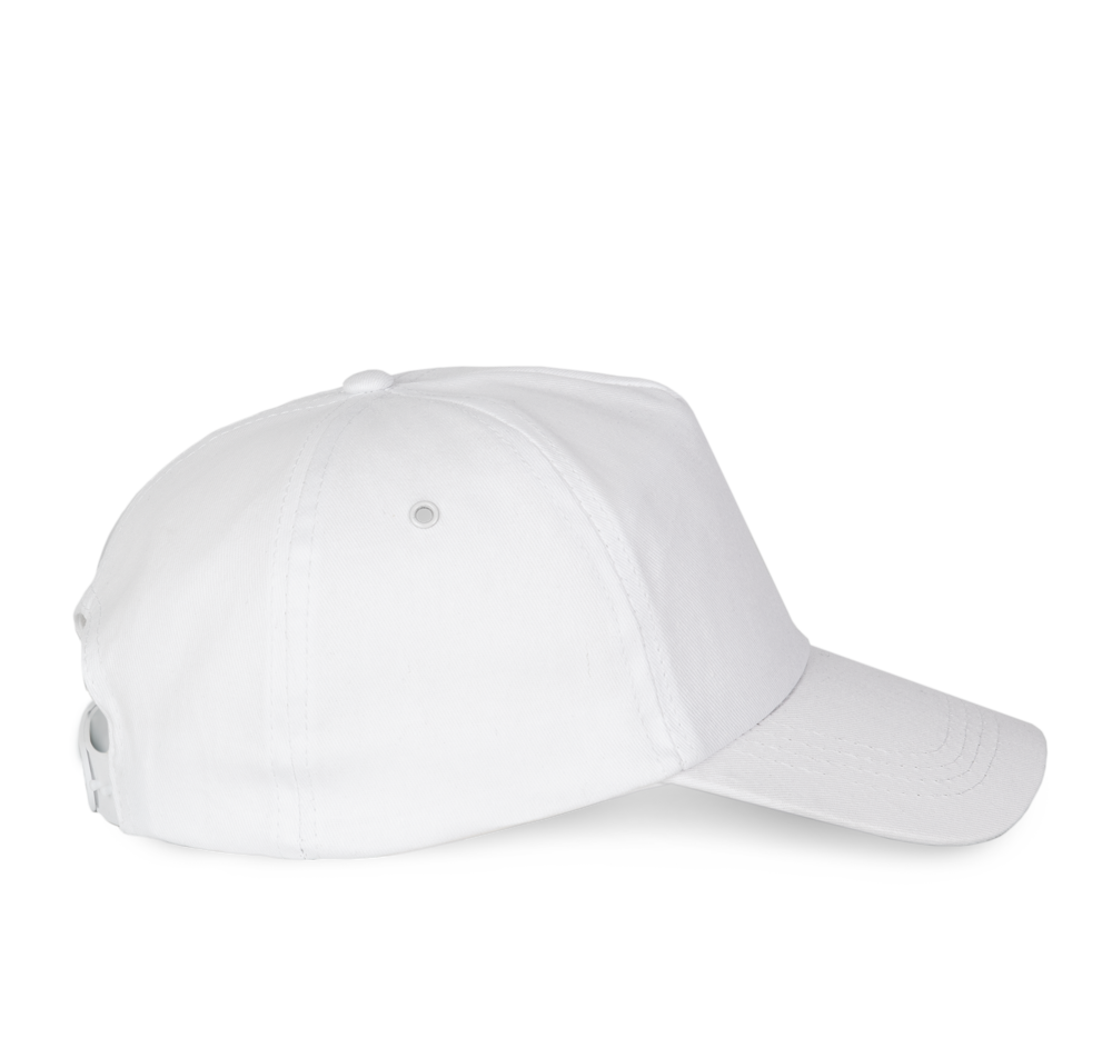 100% cotone twill. 5 pannelli. Taglia regolabile con chiusura in plastica.