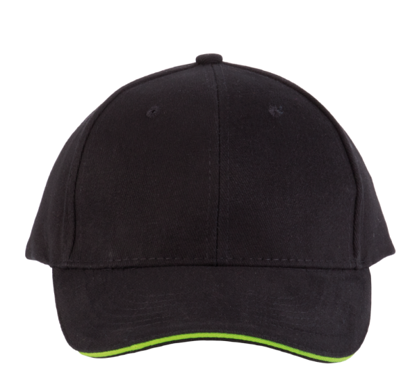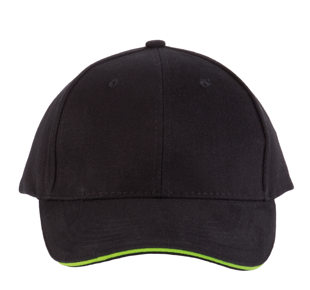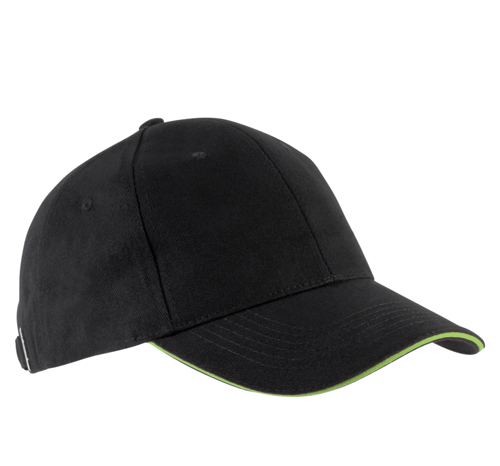 100% cotone twill spazzolato. 6 pannelli. Visiera pre-formata. Taglia regolabile con chiusura in metallo e passante. *3 varianti con contrasto colore sotto la visiera.