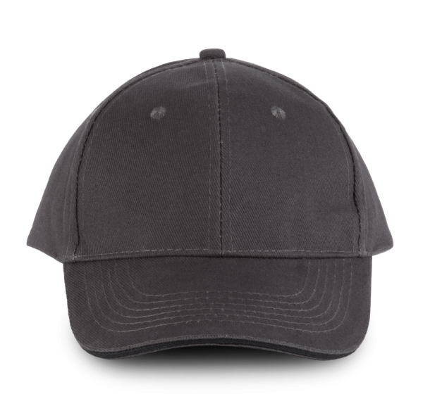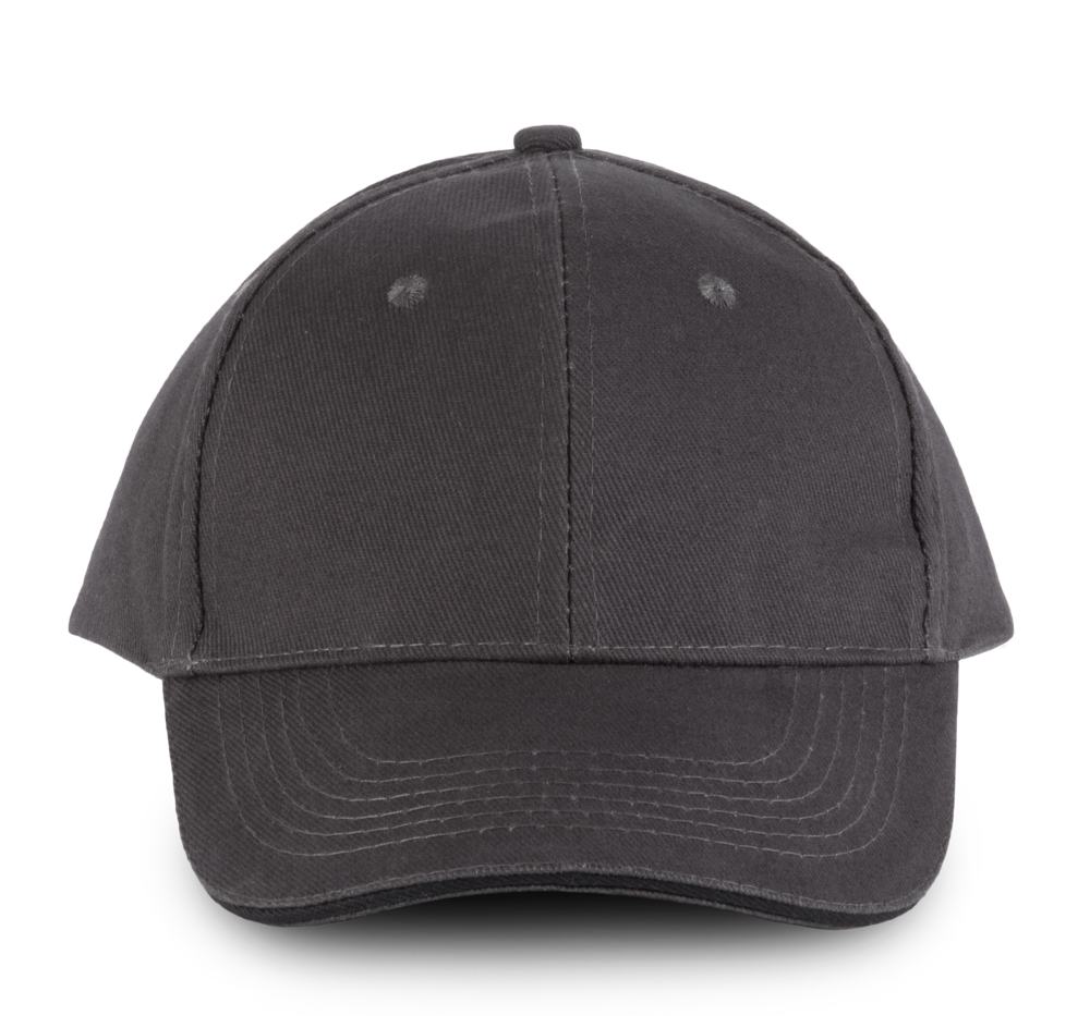 100% cotone twill spazzolato. 6 pannelli. Visiera pre-formata. Taglia regolabile con chiusura in metallo e passante. *3 varianti con contrasto colore sotto la visiera.
