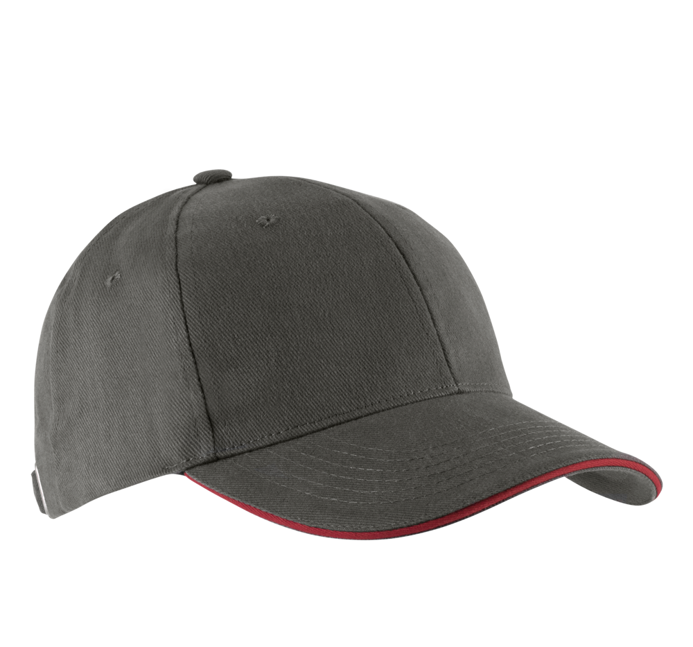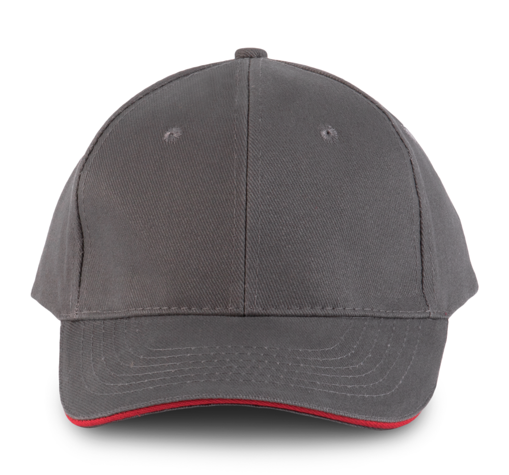 100% cotone twill spazzolato. 6 pannelli. Visiera pre-formata. Taglia regolabile con chiusura in metallo e passante. *3 varianti con contrasto colore sotto la visiera.