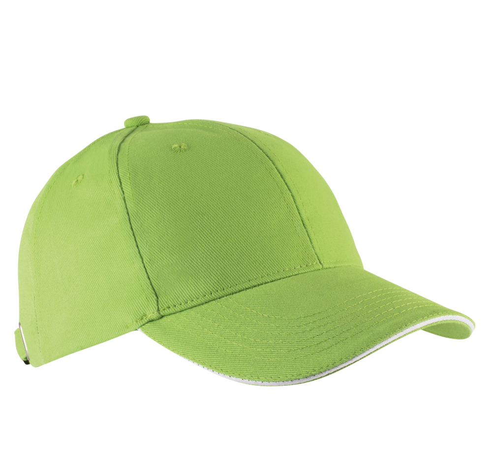 100% cotone twill spazzolato. 6 pannelli. Visiera pre-formata. Taglia regolabile con chiusura in metallo e passante. *3 varianti con contrasto colore sotto la visiera.