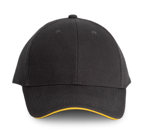 100% cotone twill spazzolato. 6 pannelli. Visiera pre-formata. Taglia regolabile con chiusura in metallo e passante. *3 varianti con contrasto colore sotto la visiera.