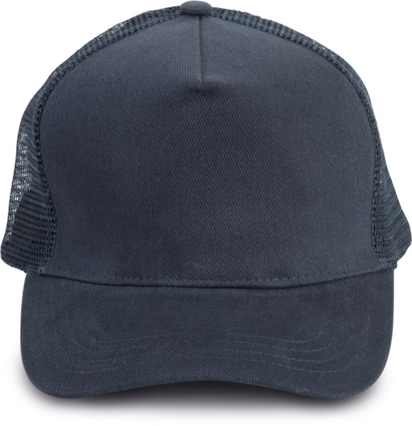 100% cotone spazzolato spesso su pannello frontale e visiera. Rete 100% poliestere. 5 pannelli.... altro