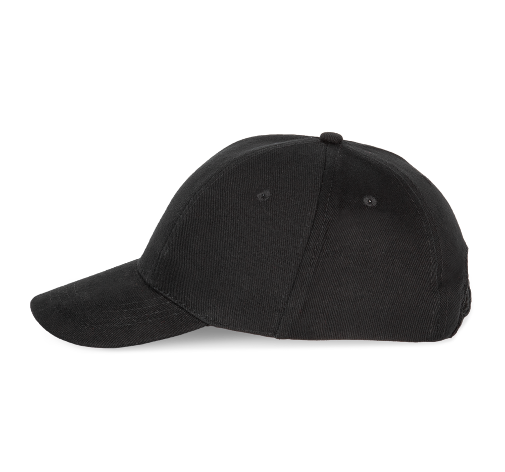 100% Cotone twill spazzolato. Cappellino 6 pannelli laminati con pannello frontale adatto specialmente per la stampa. Chiusura regolabile con fibbia in metallo.