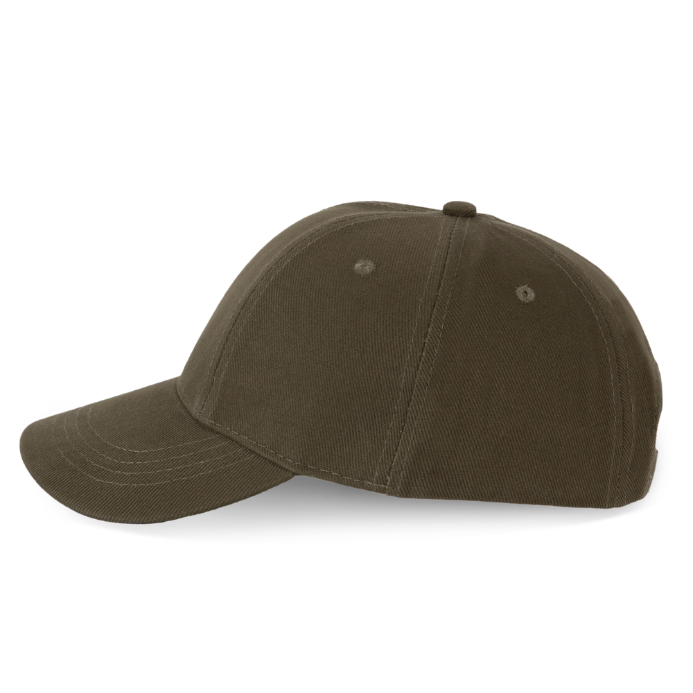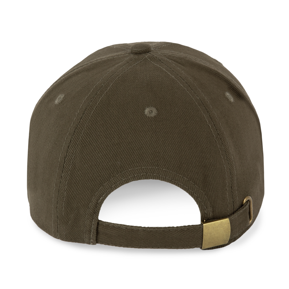 100% Cotone twill spazzolato. Cappellino 6 pannelli laminati con pannello frontale adatto specialmente per la stampa. Chiusura regolabile con fibbia in metallo.